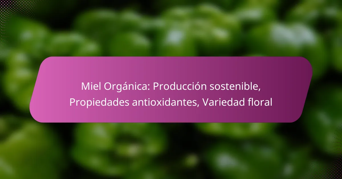 La miel orgánica es un producto natural que se obtiene de colmenas que siguen prácticas de producción sostenible y están libres de químicos. Además de sus beneficios para la salud, como sus propiedades antioxidantes que combaten el daño celular, la miel orgánica apoya la agricultura responsable y la conservación del medio ambiente. Existen diversas variedades florales, cada una con características únicas, que enriquecen su sabor y propiedades nutricionales.
