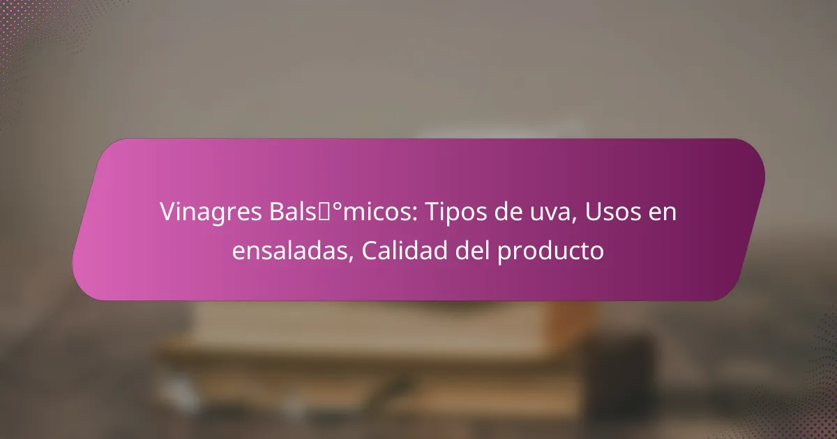 Los vinagres balsámicos son condimentos elaborados a partir de la fermentación del mosto de uva, conocidos por su sabor dulce y ácido. Se caracterizan por su textura viscosa y su color oscuro, siendo un ingrediente esencial en diversas preparaciones culinarias, especialmente en ensaladas.